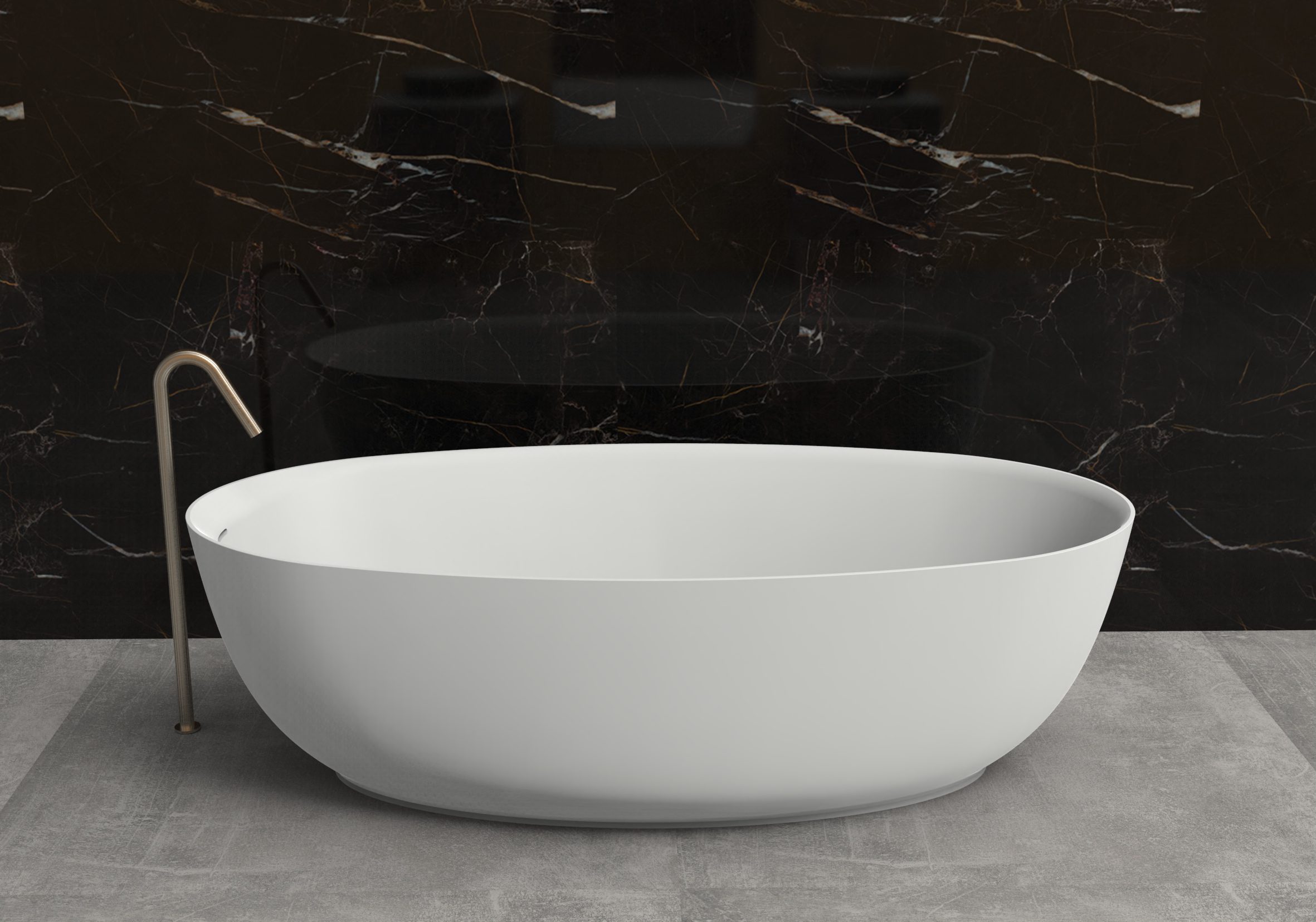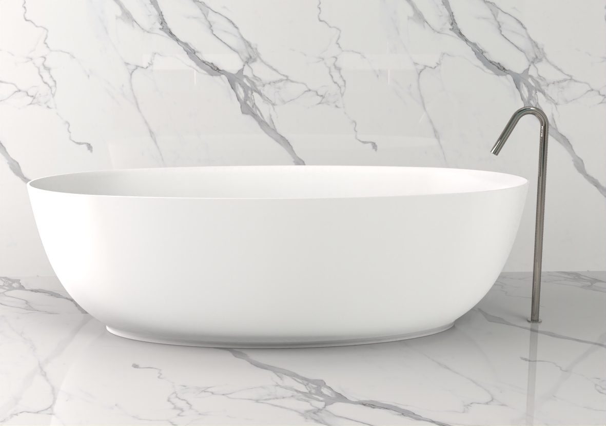 Fabricada en Solid Surface, un material de alta gama conocido por su resistencia, tacto cálido y textura sedosa, la MENARA garantiza durabilidad, fácil mantenimiento y una estética impecable. Su formato freestanding (exento) permite instalarla de forma independiente, aportando ligereza visual y elegancia arquitectónica al baño.